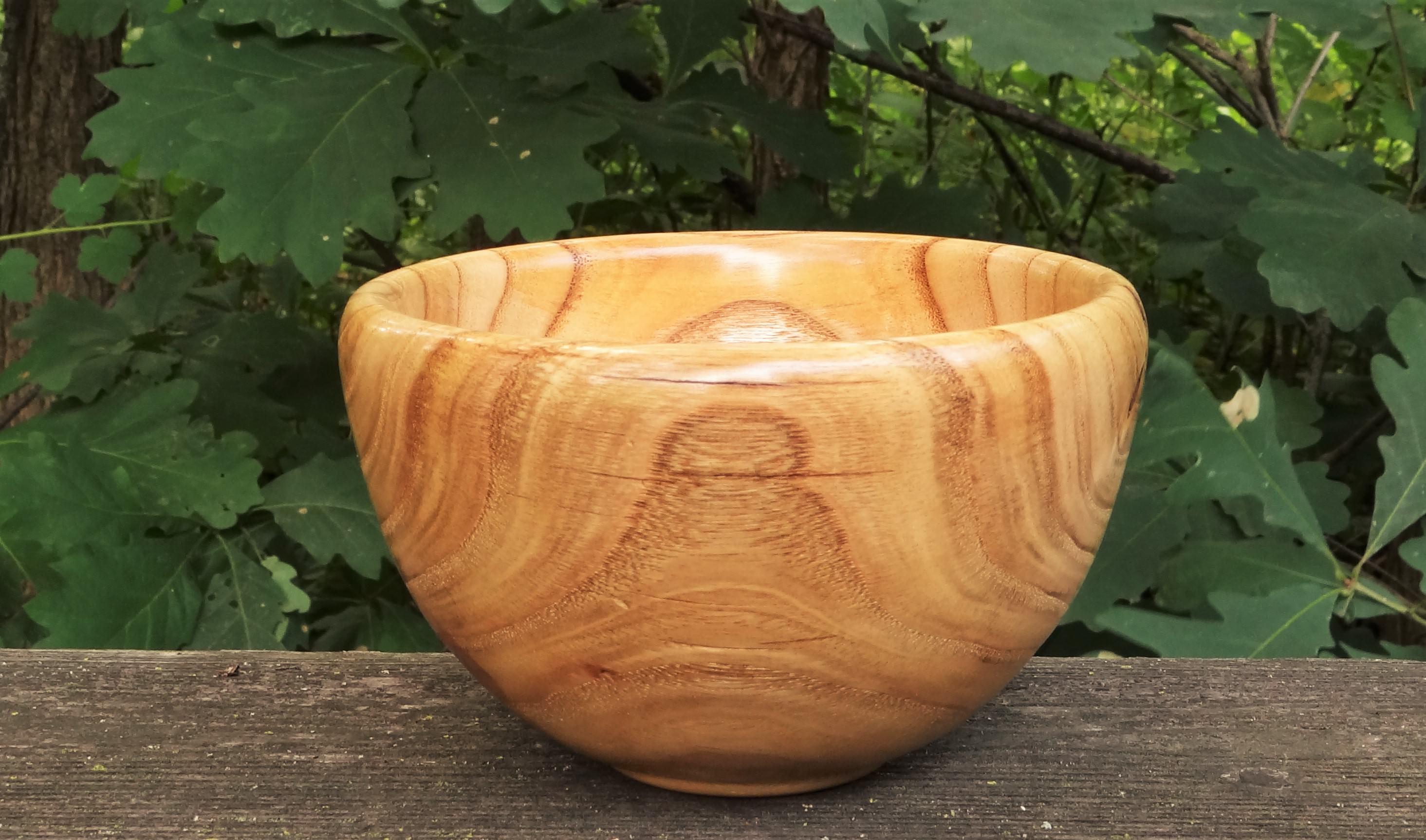 In this post we feature chestnut bowls that were crafted by members of the West Michigan Woodturners. These bowls are a celebration of the natural patterns found in chestnut wood. They were made from trees planted on our farm 30 years ago that were removed due to disease or overcrowding. Instead of letting the wood go to waste, we contacted the members of this association. As you can see from the pictures below, each crafts-person captured the inherent order and beautiful features of the wood and its grain patterns.