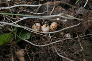 There is an unassuming small tuber found in many northern Michigan forests called hog peanut. Most people would not notice it. The pink flowers are small and hidden by the foliage. It’s a short dense plant easily mistaken for a mini bean like plant. However deep within this tiny plant harbors an amazing amount of power. It can fix nitrogen from the atmosphere to the soil. Many plants in the bean family can do that. That is common. But the real power comes from it being able to do that in shade. That is not common. When I started growing this plant, the first thing I noticed was the amazing amount of animal activity surrounding it. Chipmunks in the fall were the attracted to the tubers. Deer browsed on the foliage. Voles collected large batches of them in the fall and winter and buried them in caches near the base of our hybrid oaks. Everyone seemed to take notice of this plant but me and I planted it! Eventually I started digging them up and realized the magic of this perennial bean plant. First the tubers are extremely hard to find in the soil. The skin of the tuber has a membrane that makes soil stick to it so it looks like a piece of dirt not a bean. The image you see above is the cleaned up version. Besides the camouflaged casing, the tuber itself is of varying sizes. Some tubers are produced by pollination of a secondary flower near the base of the plant. I have no idea how this works but consider it like a peanut with a flower that dives into the ground after pollination. It wasn’t until I started growing them in pots that I realized that the seeds produced a variety of different sized tubers. Of course when there is variety in plants, there is always someone in horticulture that is snooping around. In this case, me. And that is how ‘Crispy Snack’ came into existence. So this spring, camera in hand I plan to do a study on its flowering habits, seed set and tuber production as well as the actual yields per acre. I will publish my finds in “Unassuming News”. Maybe someone will take notice of this….