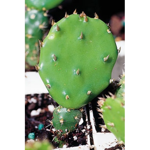 This selection can be used specifically for Nopales and is relatively free of thorns but not free of the glochids. Each plant produces multiple clusters of clean thick pads that are quite long being up to 6 inches in length. This variety is the closest you are going to get to the Texas selections which are not hardy in Michigan. Keep in mind, you are still going to need to peel them with gloves to avoid those teeny glochids. Only very old pads develop some thorns but for the most part this selection has few if any thorns. The pads themselves are larger than the typical prickly pear and for the first year are quite clean and bright green. This is cutting grown and was a selection from our seedlings given to my mother. She grew it for its bright yellow flowers. Long live the memories of mom.