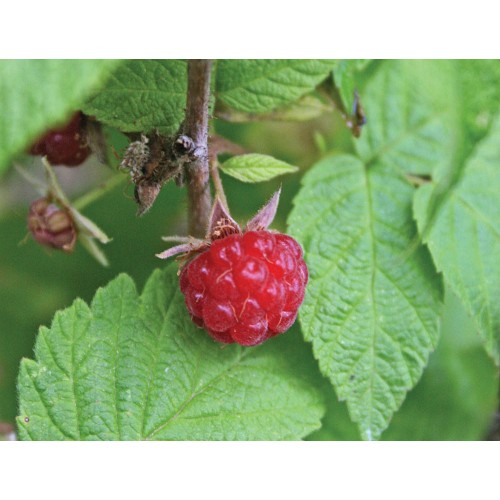 One of best flavored raspberries with tiny seeds and flavor much like the thimbleberry. Northern red raspberry is a small fruit with a big flavor. Each plant grows a cluster of 2-3 thornless canes that reach only 2-3 ft. tall. The canes live for 2 years before production ends and new ones take their place. This is a stoloniferous selection with no tip layering and is easy to propagate by root cuttings. We found our original plants near Paradise, Michigan as well as colonies on Lake Huron. We collected the seed and made a planting of roughly 50 plants from these seedlings at our farm. We are now using the largest fruiting selections at our farm. This species will grow in high mineral rock and sand and still be productive. It is best to plant this species in full sun. Our potted plants are grown from seed. The field grown plants are grown from root cuttings making up a mix of different seed strains. They can be shipped during the dormant seasons without leaves on them.