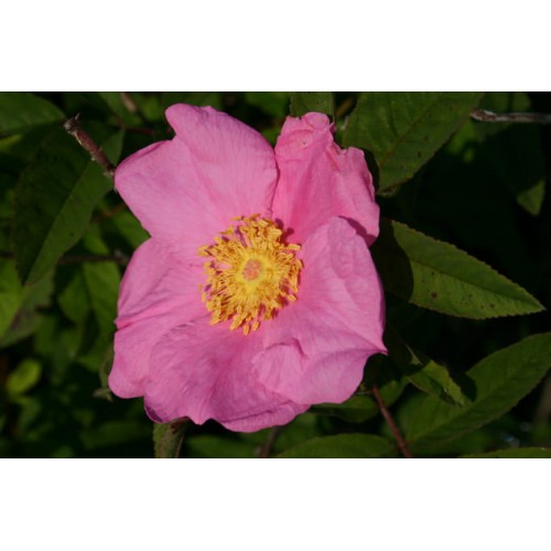 This compact form of swamp rose was found as a stand out chance seedling in a wetland in central Michigan. The bright reddish purple fall color and dense growth habit make it unique with this species. Reproduces true from seed. Hip production is low compared to other shrub roses but the petals have a nice floral flavor great for an addition to tea. I have grown this species off and on for the last 10 years and found it easy to grow outside of wetland conditions. Height to 3 with equal width.