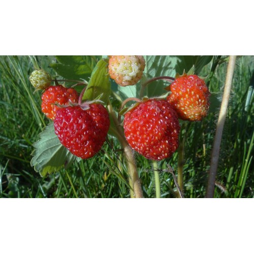 This is the most familiar and well liked of all native fruits. The cultivated strawberries are hybrids of this and South American species. From a horticultural perspective, their size and yields are needed for commercial use, but the small-berried wild ones have a much more pronounced and full flavor.Do they taste like the wild ones? These are the wild ones! Grown from seed of different fruiting clones, we selected the best of the best in terms of yield and good leaf retention. Our population contains about 200 selections done over the course of 10 years of growing out wild strawberries from seeds gathered throughout Michigan. Each of our potted plants are grown from seed and are genetically different.