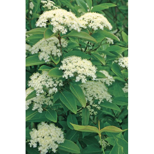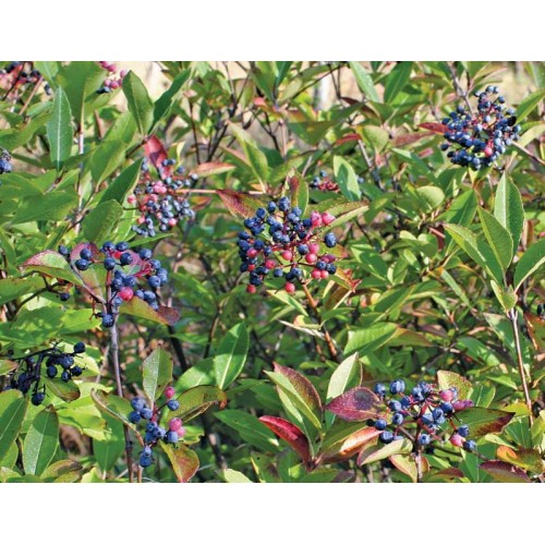 This species and the Manchurian viburnum have a similar flavor. The fragrant flowers are densely born all along the outside of the plants. Height and width to 6 ft. or less. Our seed source originally came from northern Wisconsin and Nova Scotia. After twenty years the plants look like giant balls of flowers in the spring making it one of the best for ornamental use. Everything is grown from seed not cuttings with this species. We found out our bushes ripen early and are enjoyed by many different species of birds. This has prompted us to collect in a timely fashion as the fruits color from pink to blue.