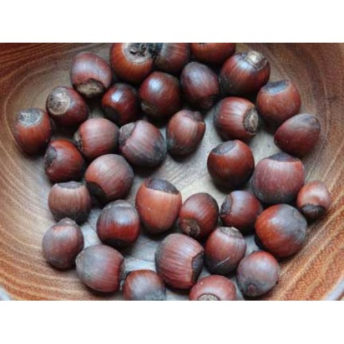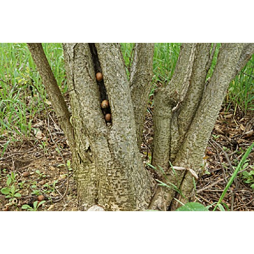Trazels are large shrubs and multi-stemmed hazels easily grown in a variety of soils and climates. Our Ecos seed source originally came from an Illinois farmer who had two plants in a fence row growing and producing well for the last 50 years. Our plants are now growing on a sandy hillside and have stayed healthy over the last 20 years with little incidence of filbert blight. The nuts are similar to the American hazels but twice the size which are ‘housed’ in a round baseball sized cluster. Very good flavor with high oil content. It is best to use two of these plants for cross pollination and heavier fruit set. Height to 15-20 ft. with equal width. Cannot ship to WA and OR.