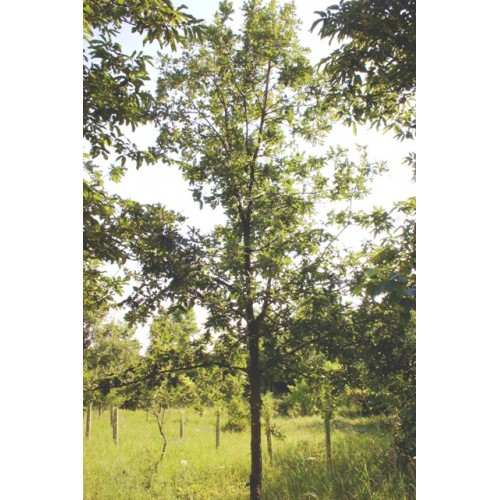 Burgambel develops a compact, rather bushy crown to 40 ft. Trees have various shapes and sizes. Some round, others upright. Best in dry, sandy well-drained sites. One of the most durable hybrids for dry climates, the tap root often develops lots of hair roots and is easily transplanted compared to red oak. It also regenerates roots quickly and once established regains its growth rate right away.