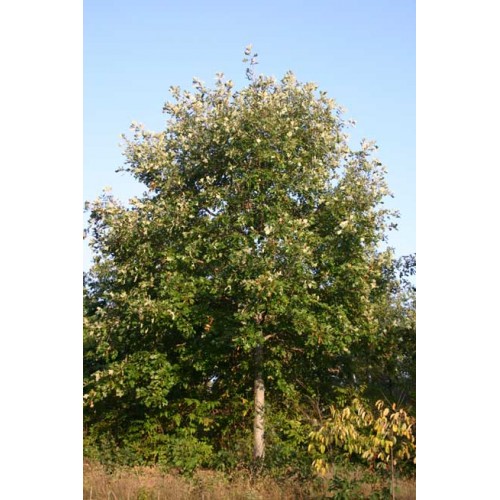 Our McDaniel hybrids are grown from seed from the grafted parent. At our farm, these naturally cross back to the bur oak making a more vigorous hybrid compared to the western strain of this cross. Burenglish oak transplants well and grows in a wide variety of soil types. Growth rate averages 2-4 ft. per year. Acorn production begins between 5-10 years of age. Some of our customers have reported fruiting in 3 years on 5 ft tall trees. Symmetrical crown eventually develops into a dense, round or oval shape. Leaves can be large and clean of foliar diseases. Probably the best acorn producer in our white oak groups.