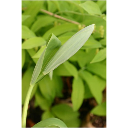 This woodland species in the lily family produces a delicious green spring vegetable. It should be harvested just prior to the leaves opening. The flavor is much like a mild asparagus or spinach and can be eaten fresh or lightly steamed. It has a little bit of an arugula bite to it and is not fibrous when young.  Numerous cuttings in season can be taken as it has a large rootstock. Plant in light shade. Our seed source originally came from oak woodland in southwest Michigan where the plants grew to 5 ft. tall. Grown both from seed and cuttings at our farm. This is kind of cool species to grow in the shade.