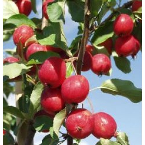 This seed selection of open pollinated hybrids has its origins in northern Europe. There it has known to have survived below a minus 40 F winter with flying colors. Since then it has been used to a limited extent in Canada and Alaska in places where apples are few and far between. It is used both as a rootstock and a source of tart fruit for jelly and juice. We have been growing Ranetka now for over 15 years and found it to be incredibly productive. Fruits are produced in dense clusters on young trees making it a kind of natural dwarf reaching only 10 ft. tall. The fruit varies from a russet brown to yellow 1/2 to 1 inch in size and is very tart. A few trees have red fruit. The fruits ripen early in August and can stay hard on the tree into winter.