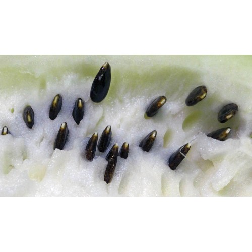 Fruit of tsamma is best described as plain-like a water laden juice with a light cucumber like flavor. This species can be found in large piles in the middle of the dessert as they are drought resistant and spread by the animals and birds. They are an indispensible part of life for the indigenous peoples of the Kalahari, who store them as a standby source of water. Some Kalahari have said that it is only possible to travel across the desert during melon season. The seeds have higher food value than the flesh, and have been roasted and in some cases made into a peanut butter-like paste. Our wild watermelons, are highly vigorous growing up to 40 feet long. The plants will self root as they go along. All sizes and shapes of this species was found when we did our first grow out. Since then we have mixed larger fruited selections as well as those with no bitter taste found in the flesh. We are experimenting with this species  as an understorey crop in our tree crop plantings due to its vigor and yield in poor soil. The goal is to create a wild self seeding population.