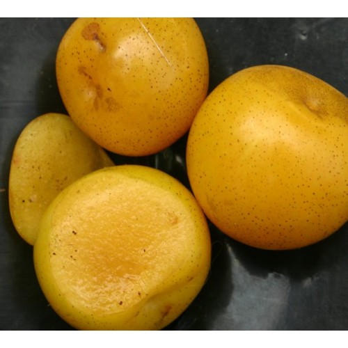 This extremely hardy sweet plum has been known to withstand temperatures of -40 F or more. From  Northern China, this species plum produces a bright yellow fruit up to 1 1/2 inches in diameter which comes true from seed. Plants are usually self-fertile. Despite early flowering, the plants tend to set fruit quickly and are rarely damaged by late frosts. Fragrant flowers attract a huge variety of pollinators in spring.  Our seed selections are grown from the most vigorous parent trees reaching 30 ft. tall with straight upright trunks.  Our Ecos selections are highly resistant to black knot. We removed many thousands of seedlings to find a few that are almost immune to this rather devastating disease which is common in North America. In a somewhat ironic genetic twist, the trees with only slight black knot disease also are the most productive so the disease must play a role to some extent in its success or lack thereof.  Prunus not allowed for international.