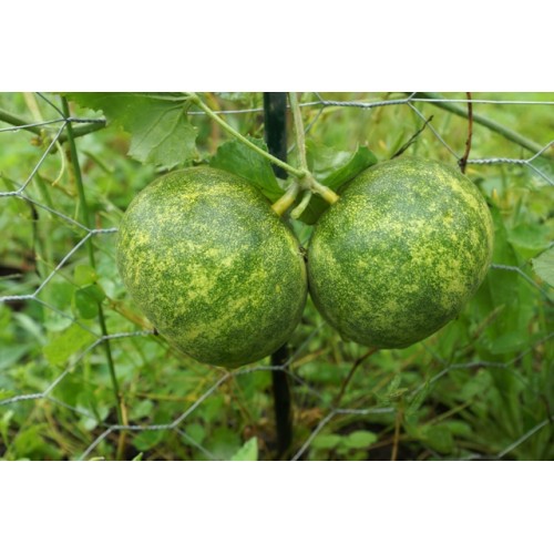 This species cucumber comes from India where it is used both raw and cooked. It is a green fruit produced in great abundance along a rather compact vine to 6 ft. or less. The amount of flowers is amazing. Almost solid yellow along the vines. It can be trellised or let it grow along the ground. The fury vines and leaves are not bothered by herbivores.  Dosakai appears to need cross pollination with additional Dosakai plants to set fruit. It is immune to all the insects and diseases that affect cucumbers. Fruit ripens starting in 70 days and continues till frost. Some seedlings may have a bit of lemon flavor to them, others not so much.  Plant seeds ¼ inch deep after frost. Germination occurs after 7 days.
