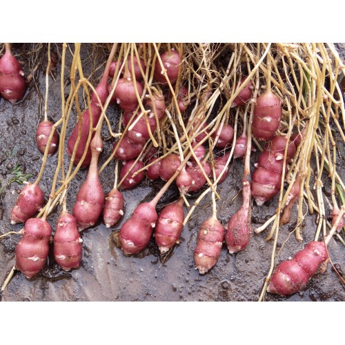 - Diversity Red These tubers are selected for long smooth shapes and vigorous growth habits. Numerous seedlings are used for creating this all red colored selection. They are very vigorous. They can be easily washed and sliced like carrots with their uniform growth. Some have small diameters but can be up to a foot long.