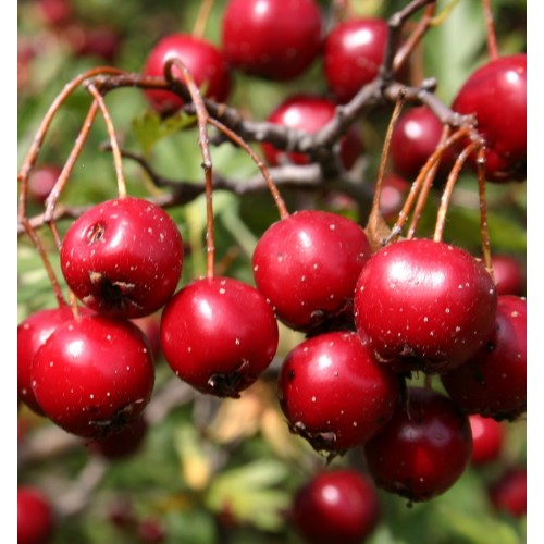 This completely edible fruiting hawthorne has the largest sized fruit we could find in the Crataegus genus. It can tolerate our Michigan winters, be mostly free of disease issues and produce a boat load of fruit usable for jelly or syrup. Like the southern mayhaw, this species is one of the most practical to grow for its fruit quality too. It is a rather bland fruit but when cooked has a unique apple-pear like fragrance. The bright red skin adds a beautiful pink color to the sauce.